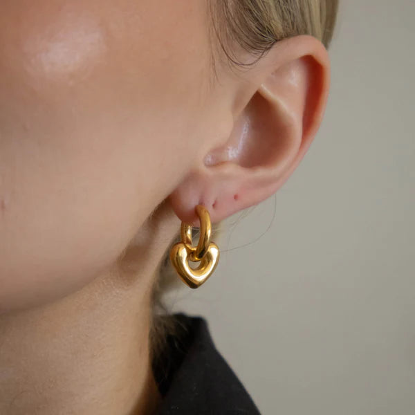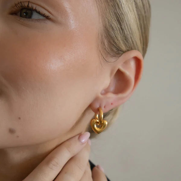 Add a little sparkle and a lot of love with our 18k Gold Plated Heart Charm Earrings. Made from sturdy stainless steel, these waterproof beauties are designed to keep up with your adventures while stealing the spotlight. Whether you're out on the town or just feeling fancy, these heart-shaped charms bring playful charm and timeless elegance to every outfit.