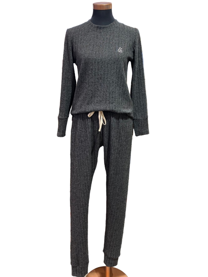 The Ribbed Jogger Set is comfy and roomy, with long cuffed sleeves and pants you can wear wide or cuffed. Made from soft ribbed fabric, it has a stretchy waistband for a perfect fit. Great for relaxed days or casual fun!